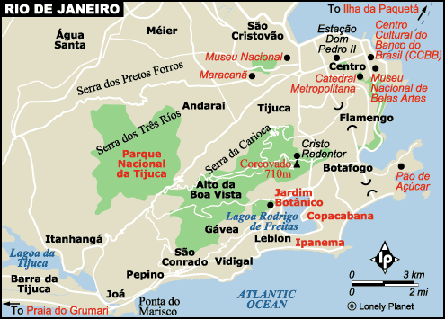 Rio is divided into a zona norte (north zone) and a zona sul (south zone) by the Serra da Carioca, steep mountains that are part of the Parque Nacional da Tijuca. These mountains descend to the edge of the city center, where the two zones meet. Rio is definitely a tale of two cities: The upper and middle classes reside in the zona sul, the lower class in the zona norte.